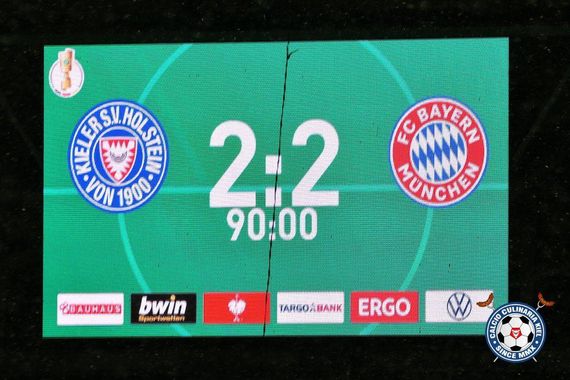 Der FC Bayern München ist gestern durch eine 8:7 Niederlage nach Elfmeterschießen im Holstein-Stadion erstmals seit 20 Jahren wieder in der zweiten Runde des DFB-Pokals ausgeschieden. Holstein-Fans feierten den überraschenden Pokalsieg im Schneegestöber von Kiel mit einem Autokorso.
