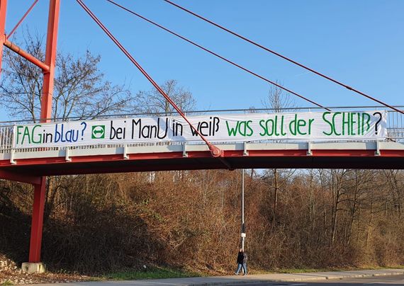Durch das Sponsoring-Engagement von TeamViewer bei Manchester United ist das Thema mit den Vereinsfarben auch in Göppingen wieder hochgekockt. FRISCH AUF!-Fans platzierten erneut Plakate in Göppingen, auf denen der Farbwechsel bei den Heimtrikots nochmal kritisiert wurde. Auch wenn die Clubs FRISCH AUF! Göppingen und Manchester United von ihrer Größe sicherlich nicht vergleichbar sind, sind die Vereinsfarben auch für FRISCH AUF!-Fans ein Teil der Identifikation mit dem eigenen Verein, die man wegen Sponsoreninteressen nicht ignorieren sollte. (Faszination Fankurve, 26.03.2021)