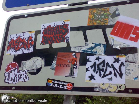 Nicht nur in Nürnberg verkleben Fußballfans Aufkleber im öffentlichen Raum.
