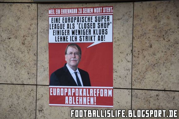 In Richtung Koch gerichtete Plakate wurden im Vorfeld der Abstimmung auch an der Zentrale des Bayerischen Fußball-Verbandes (BFV) in der Brienner Straße 50 in München angebracht. Koch ist nicht nur DFB-Vizepräsident und UEFA-Exekutivkomitee-Mitglied, sondern auch Präsident des BFV. Die Gruppe Munich's Red Pride vom FC Bayern München platzierte am sogenannten „Haus des Fußballs“ des BFV in der Münchner Innenstadt Plakate, auf denen Koch mit seinem „Eine europäische Super League als 'closed shop' einiger weniger Klubs lehne ich deshalb strikt ab“-Zitat zu sehen war. Zudem war auf den Plakaten noch die Forderung „Worten Taten folgen lassen: Europapokalreform ablehnen!“ zu lesen. Da die UEFA-Reform zukünftig eine Champions-League vorsieht, in der in einem Ligasystem nach „Schweizer Model“ gespielt wird und die Qualifikation auch über Wildcards laufen kann, sehen aktive Fans in den Reformplänen die Einführung einer Super League unter dem Dach der UEFA (Faszination Fankurve berichtete).
