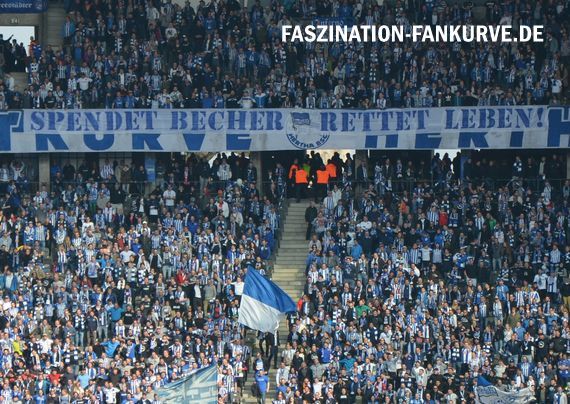 Im letzten Jahr sammelten die Harlekins insgesamt 26.000 Euro für den Berliner Krebsgesellschaft e.V.. 2004 erkrankte ein Mitglied der Hertha-Ultras Harlekins Berlin namens Benny an Leukämie und verstarb nach längerem Kampf. Die Harlekins organisierten damals eine groß angelegte Typisierungskampagne. Die Ultras unzähliger Vereine schlossen sich der Kampagne an und zeigten damit eine innerhalb der deutschen Ultràszene bis dahin einmalige Solidarität. Danach entstand die „Spendet Becher!“-Aktion, mit der die Harlekins seitdem jährlich Spenden für den guten Zweck einsammeln. (Faszination Fankurve, 02.04.2021)