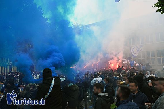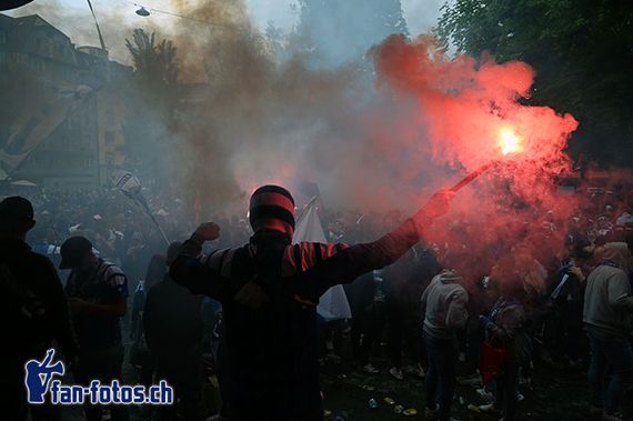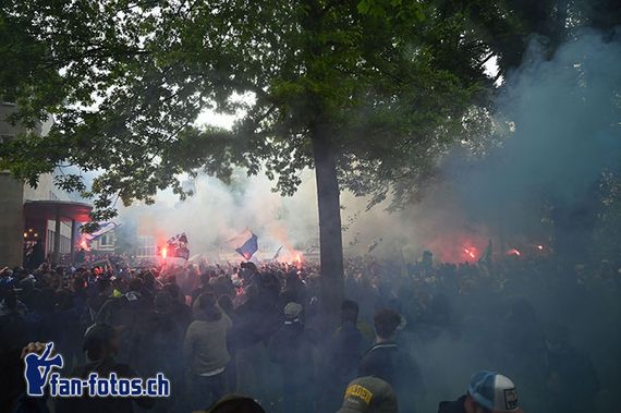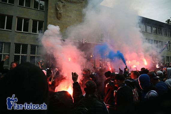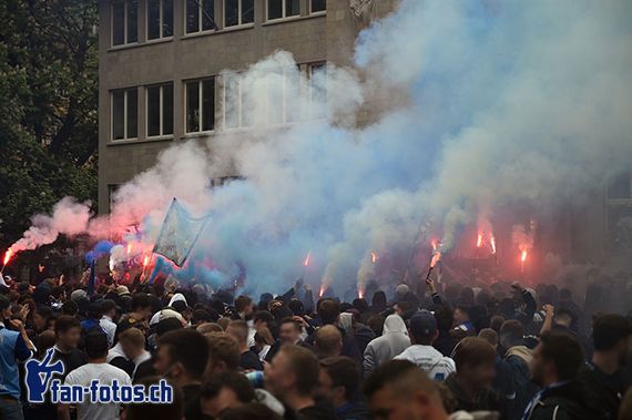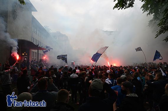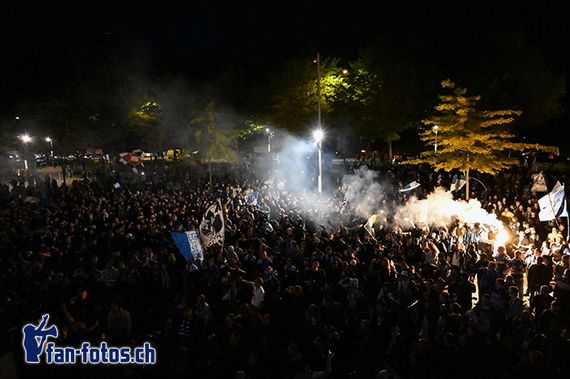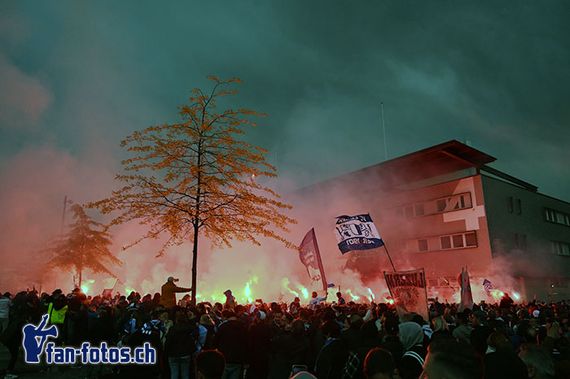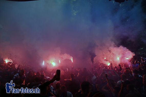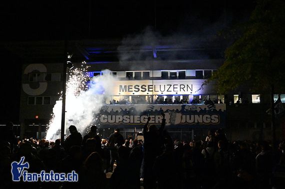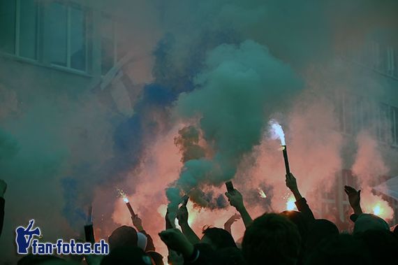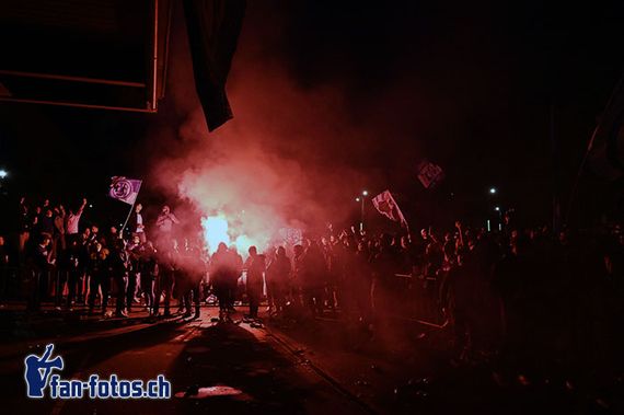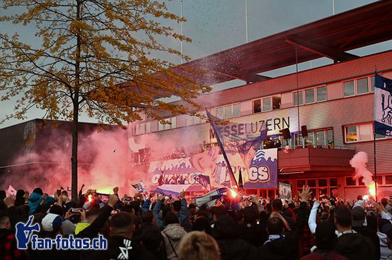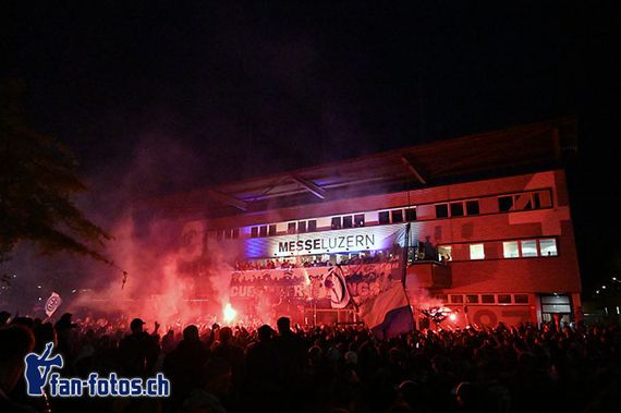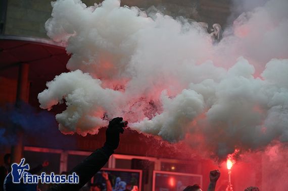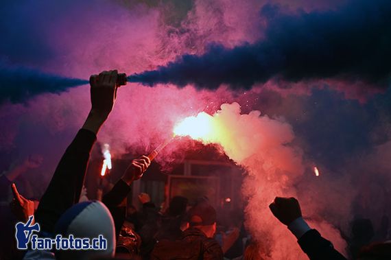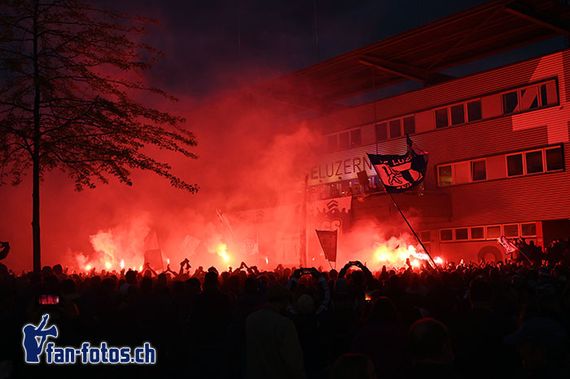 Empfang der FC Luzern-Fans mit Pyro & Feuerwerk