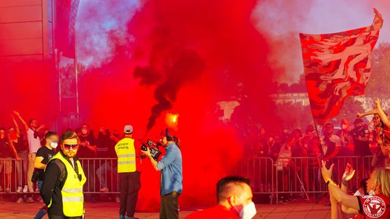 Schanzer Choreo mit rotem Rauch