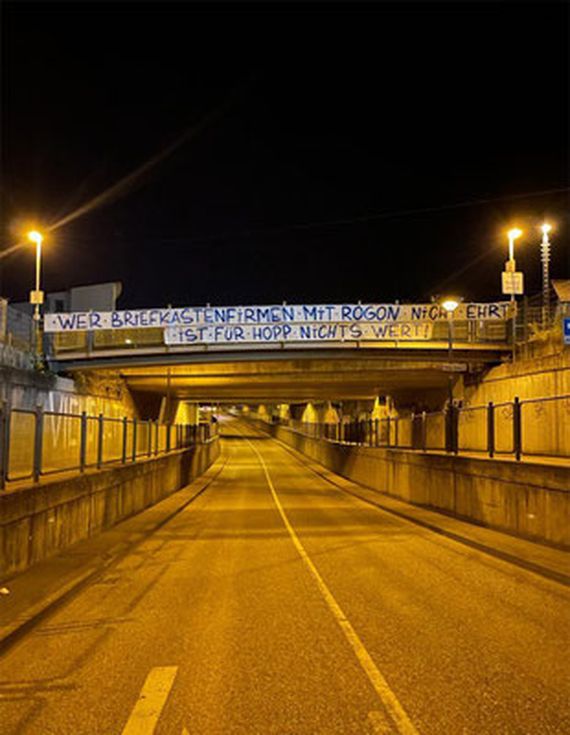 „Aufgrund der seit Monaten anhaltenden Geschehnisse rund um die Person Dietmar Hopp und wie er unseren Verein repräsentiert bzw. in diesem immer noch agiert, sehen wir uns nun gezwungen, dazu Position zu beziehen“, begründete die Fanszene Hoffenheim die eigene Aktion.