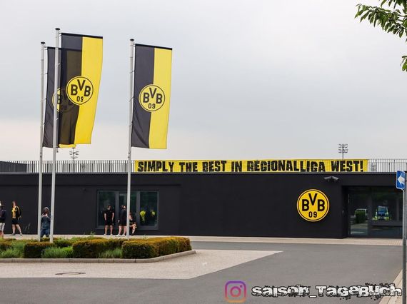 Bei Rückankunft am Trainingsgeländer von Borussia Dortmund wurden die „BVB-Amateure“ von zahlreichen Fans in Empfang genommen. Dabei wurde gelber Rauch gezündet und gemeinsam mit der Mannschaft gesungen. Via Spruchband wurde zudem nochmal das Motto „Simply The Best In Regionalliga West“ aufgegriffen.