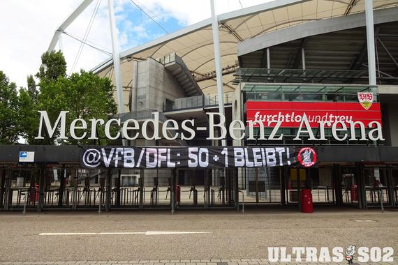 „Nachdem sich das Bundeskartellamt im Mai dieses Jahres mit der 50+1-Regel beschäftigt hat, steht am 14.07.2021 dieses Thema auf der Tagesordnung der DFL-Mitgliederversammlung. Nach und nach sickerten in den letzten Tagen und Wochen die ersten Informationen durch, deren Inhalte uns hochgradig alarmieren. Es muss so deutlich gesagt werden: Die 50+1-Regel scheint derzeit gefährdet wie nie! Aus diesem Grund wurde am Wochenende noch einmal per Spruchband klargestellt, wie die Fanszene des VfB Stuttgart zu diesem Thema steht. Nichts als der Fortbestand der 50+1-Regel kommt für uns in Frage. Diesen Standpunkt hat die Cannstatter Kurve in den letzten Jahren mehrfach klargestellt, unter anderem unterschrieben im Jahr 2018 über 200 Gruppen und Fanclubs unseres Vereins eine Erklärung für den Erhalt dieser Regel. Vor diesem Hintergrund kann es von Seiten der Vertreter unseres Vereins in der DFL-Mitgliederversammlung nur eine Haltung geben: 50+1 ist unantastbar!“, hieß es dazu in einer Erklärung der Cannstatter Kurve. Mit einem „@VfB/DFL: 50+1 bleibt!“-Banner am Neckarstadion wurde diese Meinung auch optisch unterstrichen.