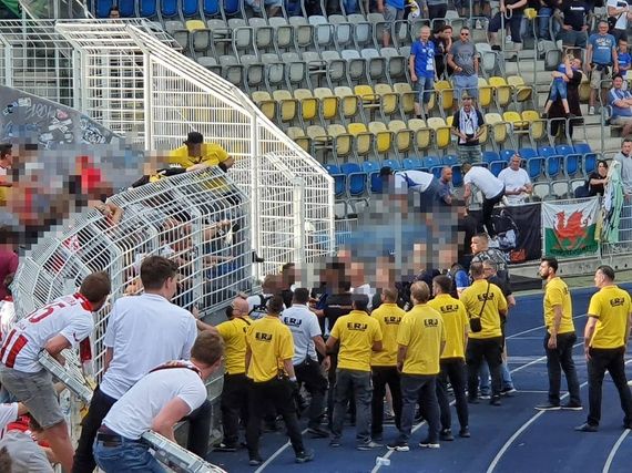 Tumulte vorm Gästeblock, als FCC-Fans von der Haupttribüne dort auftauchten.