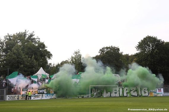 Die Pyroshow der BSG Chemie Leipzig-Fans.