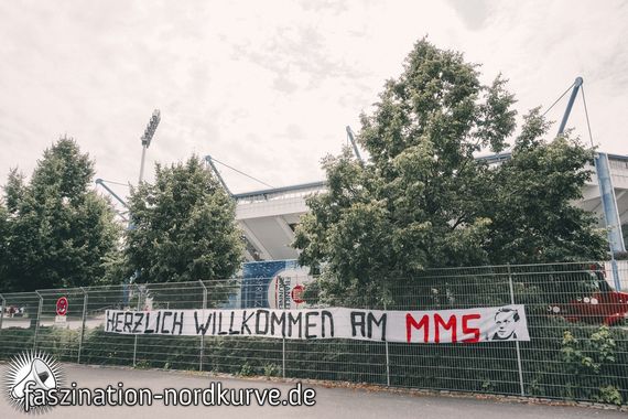 Spruchbandaktion am Max-Morlock-Stadion beim Saisonauftakt.