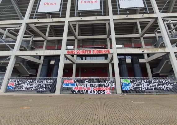 Beim 1. FC Köln findet am 05. September 2021 ein sogenannter Mitgliederstammtisch zum Thema „Einstieg von Investoren bei den Vereinen“ statt. Im Rahmen des Heimspiels gegen den VfL Bochum machte die aktive Kölner Fanszene mit einer Plakataktion nochmals deutlich, dass man gegen einen Investoreneinstieg ist.