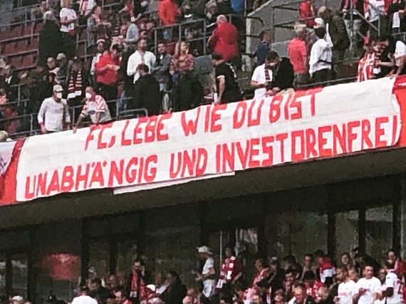 Bevor es am Sonntag somit zu einer „offenen Diskussionsrunde zum Thema Investoren-Modelle“ kommt, zu der der Mitgliederrat und das Präsidium des 1. FC Köln eingeladen haben, hat sich die Fanszene nochmals eindeutig zum Thema positioniert. Die Profimannschaft des 1. FC Köln wurde 2002 in eine GmbH & Co. KGaA ausgegliedert. Der Mutterverein erhält bis heute jedoch 100 Prozent der Anteile an dieser ausgegliederten Kapitalgesellschaft. Auch der amtierende Vorstand des 1. FC Köln betonte immer wieder die Absicht, dass der 1. FC Köln ein mitgliedergeführter und von Investoren unabhängiger Verein bleiben solle. (Faszination Fankurve, 30.08.2021)