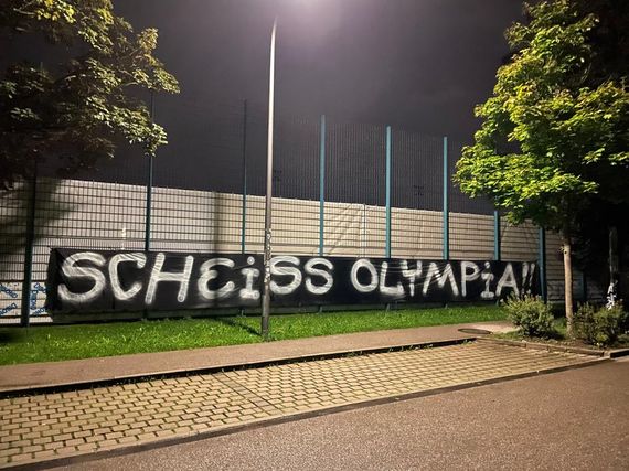 So veröffentlichte der Ultra-Dachverband Münchner Löwen Anfang der Woche ein Foto, auf dem eine „Scheiß Olympia“-Botschaft auf einem Spruchband zu lesen war, das am Trainingsgelände des TSV 1860 München angebracht wurde.
