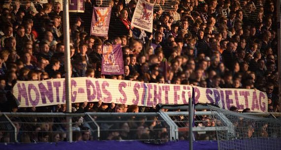 „Montagsspiele stehen einer aktiven, bunten und lauten Fankultur im Stadion nicht nur im Weg, sondern unterbinden sie maßgeblich“ fasste Jörn Brauer von der Violet Crew (VC) die Problematik aus Sicht der Fans zusammen. „Wir finden und fordern, Fußball sollte für die Fans da sein und insbesondere dem Teil, der aktiv ins Stadion geht und auswärts fährt, sollte mit Spielansetzungen, die diese Unterstützung erschweren oder verhindern, nicht das Feiern des Fußballs im Stadion erschwert werden.“