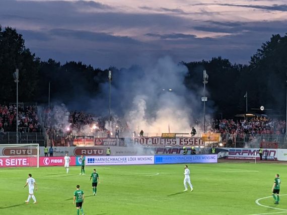 In Münster kam es am Dienstagabend zum Topspiel der Regionalliga West zwischen dem SC Preußen Münster und Rot-Weiss Essen. In der Fiffi-Gerritzen-Kurve wurde die Partie mit einer Choreografie eingeleitet. Zu Beginn der 2. Halbzeit gab es Pyroshows auf beiden Seiten und nach Abpfiff kam es zu Auseinandersetzungen beider Fanlager.