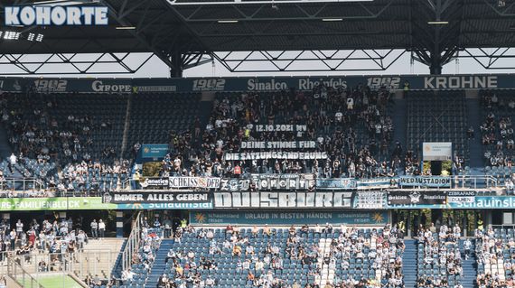 Im Wedaustadion machte sich die Fans vom MSV Duisburg für Satzungsänderungsanträge auf der anstehenden Mitgliederversammlung stark. „12.10.2021 MV – Deine Stimme für die Satzungsänderung“, stand auf dem Plakat der Kohorte Ultras geschrieben. Die Faninitiative „es lebe der Verein“ hat vier Satzungsänderungsvorschläge eingebracht. Ziel der Änderungen ist u.a. Investoren stärker zu kontrollieren. Für Anteilsverkäufe soll in Zukunft zudem eine 3/4 Mehrheit notwendig sein. Eine genaue Erläuterung der Anträge könnt ihr hier nachlesen. (Faszination Fankurve, 20.09.2021)