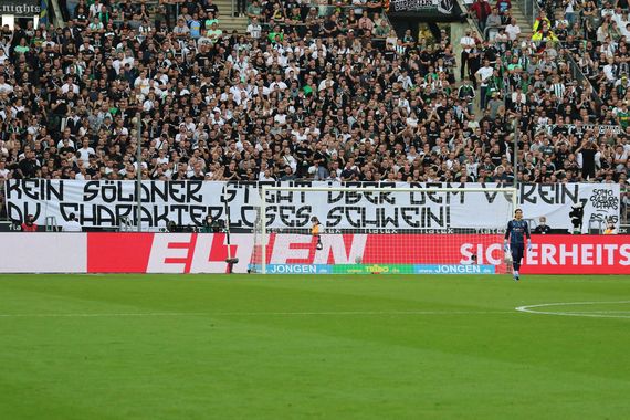 Am gestrigen Abend wurde im Borussia-Park keine der drei Stufen ausgelöst. Marco Rose betrat den Borussia-Park gestern erst kurz vor Anpfiff. Neben ein paar beleidigenden Gesängen und Pfiffen gab es in der Nordkurve noch gegen ihn gerichtete Plakate zu sehen. „Marco Rose: Geheuchelte Identifikation und falsche Versprechen – Kein Söldner steht über dem Verein du charakterloses Schwein!“, stand auf dem zweiteiligen Spruchband von Sottoculutra Ultras und Begleitservice geschrieben. Die Fans von Borussia Mönchengladbach hatten beim gestrigen Heimspiel gegen den BVB erstmals die Möglichkeit ihre Meinung unter Anwesenheit von Rose auch ins Stadion zu tragen. Als der Wechsel von Rose zum BVB in der vergangenen Saison bekannt wurde, hatten die Sottocultura Ultras noch ein „Kein Söldner steht über dem Verein – Sofort raus mit dem charakteRlOSEn Schwein!“-Plakat von außen am Borussia-Park befestigt (Faszination Fankurve berichtete).