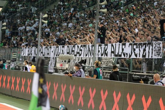 Mit einem „Der familienfreundlichste Verein, aber Topspielzuschlag muss trotzdem sein!“-Spruchband kritisierte Sottocultura gestern zudem die Ticketpreispolitik des eigenen Vereins. Mit einem „Mut zur Normalität – volle Auslastung für alle, jetzt!“-Plaklat warb die Ultragruppe zudem für komplett ausgelastete Stadien in Deutschland. Borussia Mönchengladbach gewann das gestrige Heimspiel vor 25.000 Zuschauenden mit 1:0. Der Borussia-Park war damit unter den aktuellen Auflagen ausverkauft. (Faszination Fankurve, 26.09.2021)