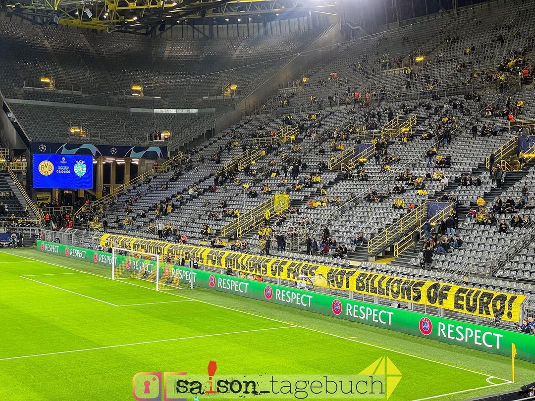 Das Südtribüne Dortmund-Bündnis hatte gestern im Vorfeld des Spiels gemeinsam mit der Südkurve München eine Stellungnahme veröffentlicht, in der unter dem Motto „„Stop UCL Reforms“ die im Frühjahr verabschiedeten Reformen der Europapokalwettbewerbe kritisiert wurden. „Das Gespenst der Super League war im letzten Frühjahr fast so schnell verflogen wie es aufgetaucht war. In seinem Windschatten und weitgehend unbemerkt von der breiten Öffentlichkeit wurde von den UEFA-Gremien aber eine Reform der Europapokalwettbewerbe durchgewunken, die beinahe die gleichen Ziele wie die Super League verfolgt: Mehr Geld und Planungssicherheit für einige wenige Vereine“, hieß es im gemeinsamen Statement von BVB- und FC Bayern-Fans (Faszination Fankurve berichtete).