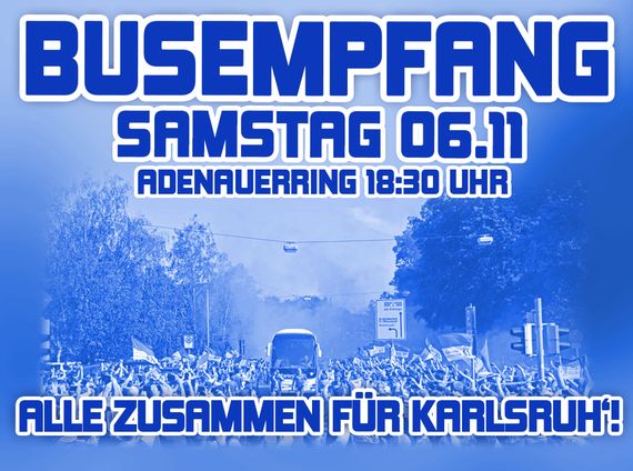 Das Samstagabendspiel der 2. Bundesliga bestreiten am kommenden Spieltag der Karlsruher SC und der Hamburger SV. Die Ultras vom KSC organisieren vor der Partie einen Busempfang am Wildparkstadion. Die Aktion soll sowohl von Fans getragen werden, die danach ins Wildparkstadion gehen, als auch von Ultras, die in der aktuellen Situation noch nicht dort sind.
