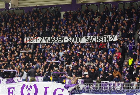 Im Erzgebirgsstadion wurden zuletzt die Corona-Maßnahmen ebenso kritisiert, wie der sächsische Ministerpräsident. Bild: Veilchenpower.de