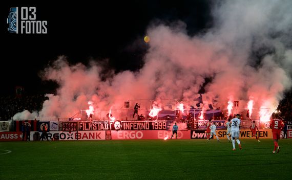 „Liebe Nordkurve, liebe 03er*innen, Wir haben am Anfang dieser Saison gesagt, dass wir den Support wieder aufnehmen, solange die Pandemische Situation es zulässt. Spätestens die Entwicklung der letzten Wochen hat uns allen gezeigt, dass sich die Lage wieder zugespitzt hat. Deswegen haben wir uns schweren Herzens dazu entschlossen, den organisierten Support wieder einzustellen. Zwar mag das Risiko im KarLi bei 2G und 2G+ Auflagen vergleichsweise gering sein, angesichts der explodierenden Infektionszahlen wollen wir jedoch mögliche Ansteckungsrisiken minimieren. Wir alle kennen Menschen die sich in jüngster Zeit mit Covid-19 angesteckt haben, obwohl sie geimpft waren. Wir halten es außerdem für das vollkommen falsche Signal in einer großen Menschenmenge unbeschwert die Farben unseres Vereins zu besingen, während wenige hundert Meter entfernt, das ausgelaugte Pflegepersonal um Menschenleben kämpft. Uns ist bewusst, dass die Situationen auf den Intensivstationen teilweise schlimmer als im letzten Jahr sind. Wir halten es daher für ausgesprochen sinnvoll im Block Abstand zu halten und einen Mund-Nasenschutz zu tragen und alles persönlich mögliche zu tun, um eine weitere Verschlechterung der Lage zu verhindern. Diese Krise bewältigen wir nur solidarisch“, teilte das Filmstadt Inferno dazu mit. (Faszination Fankurve, 25.11.2021)