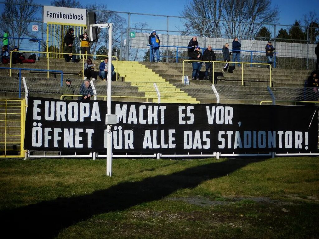 Die Fanszene Lok Leipzig zeigte am vergangenen Samstag beim Heimspiel gegen Union Fürstenwalde ein Spruchband im Bruno-Plache-Stadion, auf dem „Europa macht es vor, öffnet für alle das Stadiontor!“ geschrieben stand. Nun begründete die Fanszene, warum man in Zeiten der Pandemie auch unter 2G-Plus-Regelung wieder organisiert auftrat.