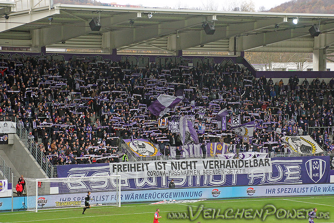 Die aktive Fanszene des FC Erzgebirge Aue wird am kommenden Sonntag beim Heimspiel gegen den SSV Jahn Regensburg zurück ins Erzgebirgsstadion kehren. Wie schon in der Hinrunde der aktuellen Saison hängt die Rückkehr der aktiven Gruppen mit der Umstellung auf die 3G-Regel zusammen.