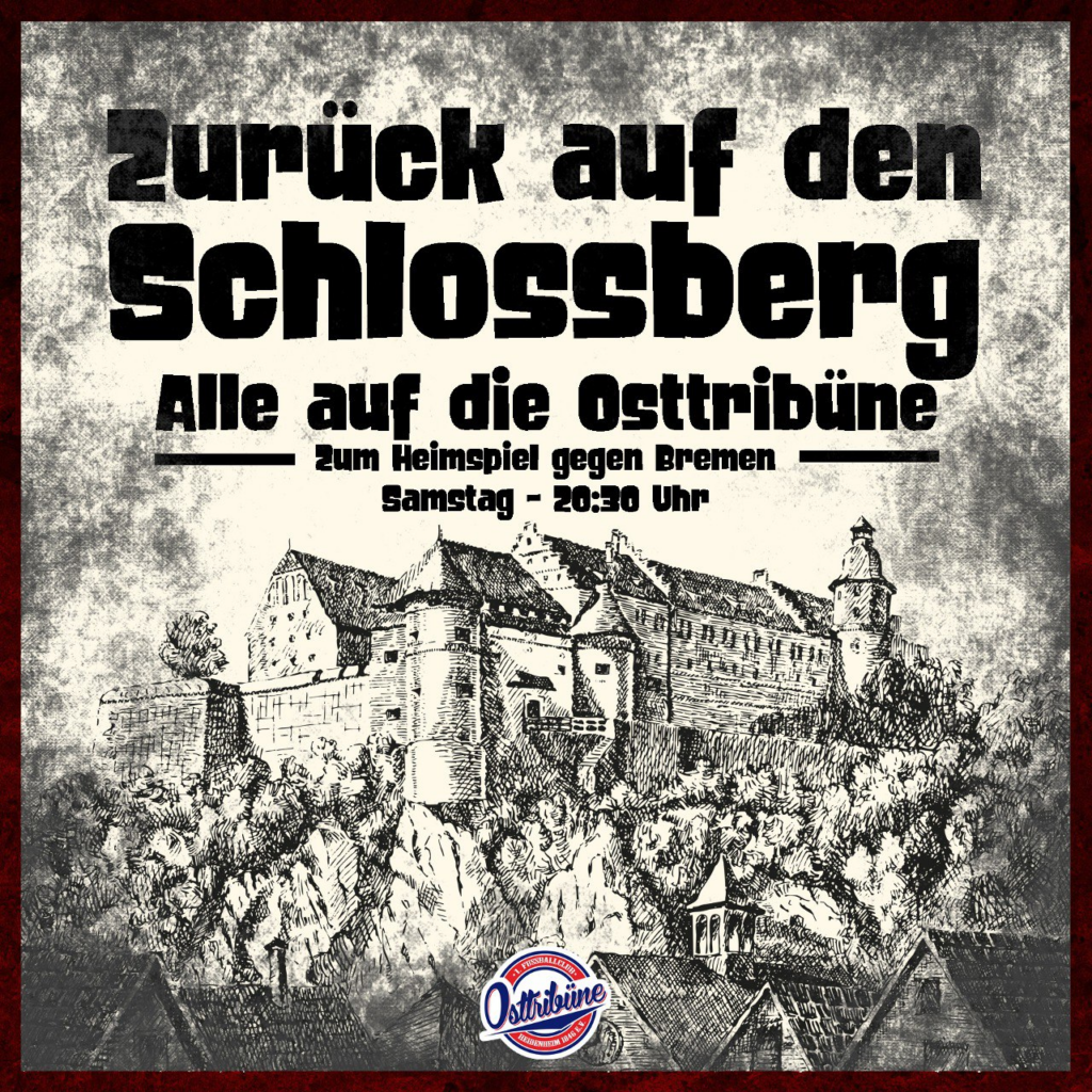 „Zürück auf den Schlossberg – Alle auf die Osttribüne – Zum Heimspiel gegen Bremen – Samstag – 20:30 Uhr“, heißt es dazu in der Mobilisierung der Osttribüne Heidenheim, die u.a. von den Ultras der Fanatico Boys veröffentlicht wurde. (Faszination Fankurve, 07.03.2022)