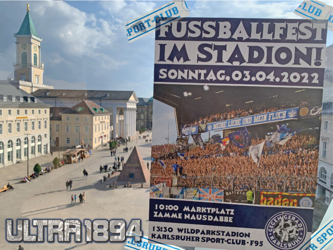 „Ciao Gegengerade, lange ist es her, dass wir gemeinsam im Stadion den KSC zum Sieg getrieben haben. Versammelten wir uns zuletzt noch auf einer provisorischen Hintertortribüne, hat sich innerhalb dieser Zeit einiges geändert und so kehren wir nun zurück auf eine Tribüne, auf der 10.000 KSC-Fans Platz haben. Über zwei Jahre hat die Pandemie einen organisierten Auftritt der Fanszene nicht zugelassen, da die Maßnahmen zu einschneidend und mit unseren Vorstellungen einer freien Kurve unvereinbar waren. Doch auch nach dieser langen Zwangspause lodert das Feuer in uns weiterhin ungebrochen. Nach aktuellem Stand wird bei unserem Spiel gegen Düsseldorf wieder weitestgehend Normalität ins Stadion einkehren. Wir treffen uns dazu um 10 Uhr am Marktplatz, um uns auf das Spiel einzustimmen. Anschließend laufen wir gemeinsam zu unserer neuen Gegengerade. Es werden viele neue Gesichter auf der Gegengerade sein – viele werden ihren Platz auf der neuen Tribüne noch finden müssen. Wir bitten deshalb alle KSC-Fans die kommenden Heimspiele besonders Rücksicht aufeinander zu nehmen. Wenn es zu Konflikten kommt, dann wendet euch gerne zunächst an uns und wir helfen, wenn möglich, weiter. Alle haben wieder Bock auf Stadion, auf geile Stimmung, 90 Minuten Vollgas und drei Punkte für den KSC. Das muss im Mittelpunkt stehen. Auf geht’s Karlsruh‘ – Fußballfest im Stadion!“, teilten das ULTRA1894-Bündnis dazu mit. (Faszination Fankurve, 20.03.2022)