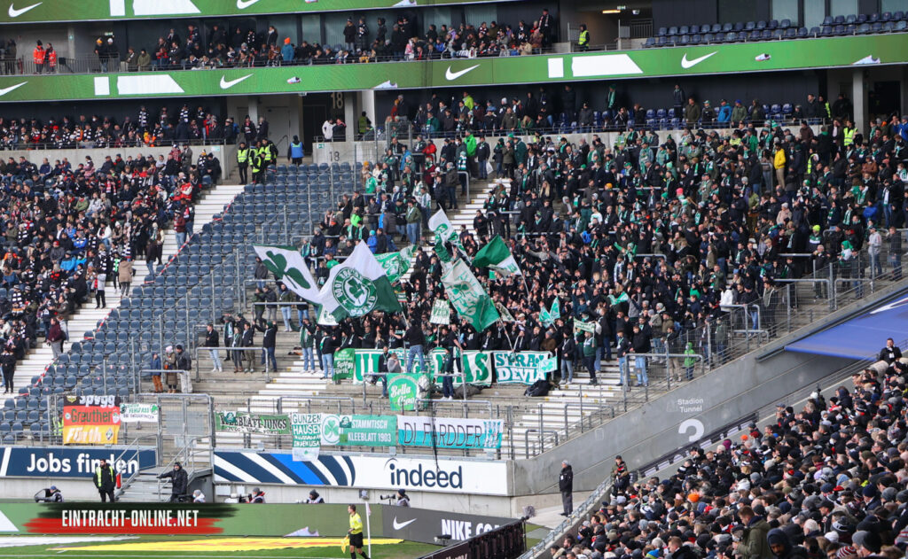 Die Spielvereinigung Fürth gastierte am Samstag um 15:30 Uhr im Waldstadion bei Eintracht Frankfurt. Die Fürther Ultraszene hatte im Vorfeld der Partie ihre Rückkehr ins Stadion angekündigt und öffentlich für eine Reise nach Frankfurt mit Regionalzügen geworben. (Faszination Fankurve, 05.04.2022)