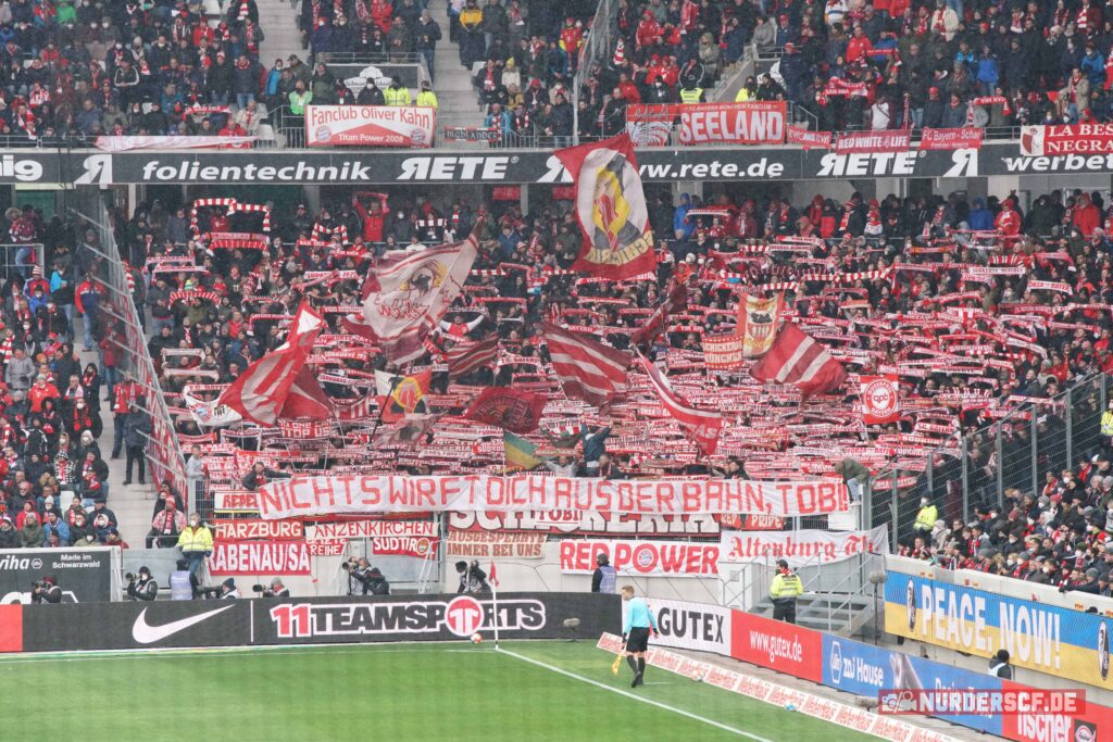 „Es geht wieder los! Fast genau 5 Monate nach unserem letzten Heimspielauftritt kehren wir geschlossen in die Südkurve zurück. Wir treffen uns am Samstag ab 12:00 am Südkurvenplatz. Für Getränke wird gesorgt und es wird auch wieder einen Verkauf geben. Wir haben ein, zwei neue Sachen dabei, lasst Euch überraschen. Außerdem gibt es Aufkleber und alte Hefte sowie passend zum 50jährigen Jubiläum der Südkurve in diesem Jahr das Anfang 2020 von uns veröffentlichte Stickeralbum über die Südkurve und die dazugehörigen Sammelsticker.Wir gehen anschließend, nach einer kurzen Ansprache der Vorsänger, gemeinsam hoch ins Stadion“, so die Ankündigung der Südkurve München dazu. Beim Auswärtsspiel im Mooswaldstadion in Freiburg traten die aktiven Gruppen der Südkurve München in der Vorwoche bereits wieder organisiert auf. (Faszination Fankurve, 09.04.2022)