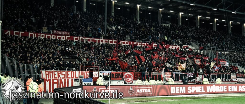„Servus Glubbfamilie, nach einer euphorischen Rückkehr in den letzten Wochen fällt es uns nicht leicht, in Hamburg wieder die Bremse reinzuhauen. Während beim HSV seit dem 02. April keine Zutrittsbeschränkungen aufgrund des Corona-Virus mehr vorgesehen sind, hat sich der FC St. Pauli gemeinsam mit seiner Fanszene darauf verständigt, am gesamten Millerntor bis zum Saisonende die 2-G-Regel aufrecht zu erhalten. Somit können nicht alle unsere Mitglieder dieses Spiel besuchen, dies gilt mit Sicherheit auch für einen Teil der Glubbfamilie. Wir ziehen hieraus die Konsequenz, dem Spiel komplett fern zu bleiben. So bitter diese Entscheidung vor allem in der jetzigen Phase der Saison ist, so wenig können wir die Umstände leider ändern oder beeinflussen. Der FCN hat zwar versucht auf den FC St. Pauli einzuwirken, wenigstens im Gästeblock die 3-G-Regel anzuwenden, jedoch leider ohne Erfolg. Wir sehen uns also gegen Sandhausen, in Kiel und daheim gegen Schalke – leider aber nicht auf St. Pauli!“, teilten Ultras Nürnberg und Banda di Amici dazu in einer Stellungnahme mit. (Faszination Fankurve, 22.04.2022)