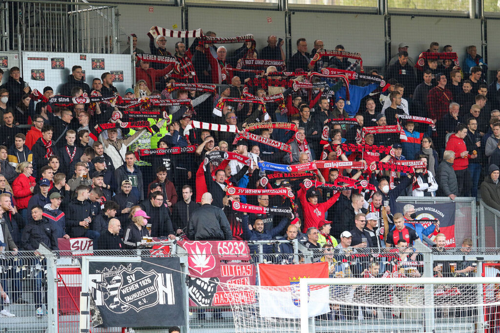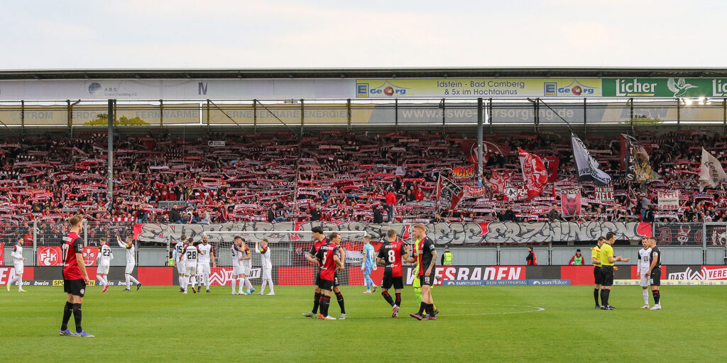 Die FCK-Fans machten sich im offiziellen Gästeblock im Süden des Stadions ebenso breit, wie im Osten und Westen. Lediglich auf der Nordtribüne waren die SV Wehen-Fans noch in der Mehrheit. Mit etwa 7.500 Gästefans drückten über 75 Prozent der 9.671 Fans im Stadion in Wiesebaden dem FCK die Daumen.