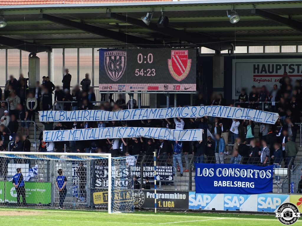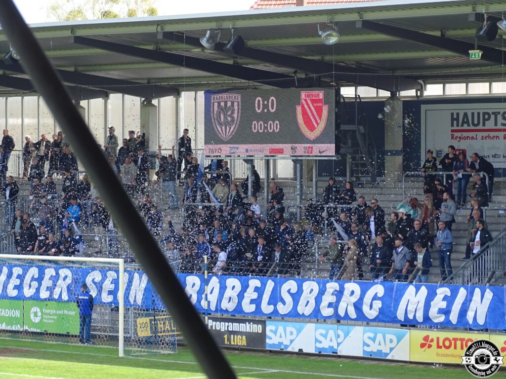 Von diesen Platzverweisen waren die Cottbuser Ultragruppen Collettivo Bianco Rosso und Ultras Energie betroffen. Die Zaunfahnen der Gruppen hingen dementsprechend nicht im Gästeblock. Der Support wurde dort somit von der Gruppe Ultima Raka alleine organisiert. Collettivo Bianco Rosso und Ultras Energie, die eine neue Zaunfahne dabeihatten, konnten in Babelsberg zwar ein Gruppenfoto machen, mussten Potsdam aber ohne Stadionbesuch wieder verlassen. Statt der 450 Gästefans waren somit nur etwa 400 Energie-Fans im Karl-Liebknecht-Stadion, was dem Support der Energie-Fans deutlich anzumerken war.