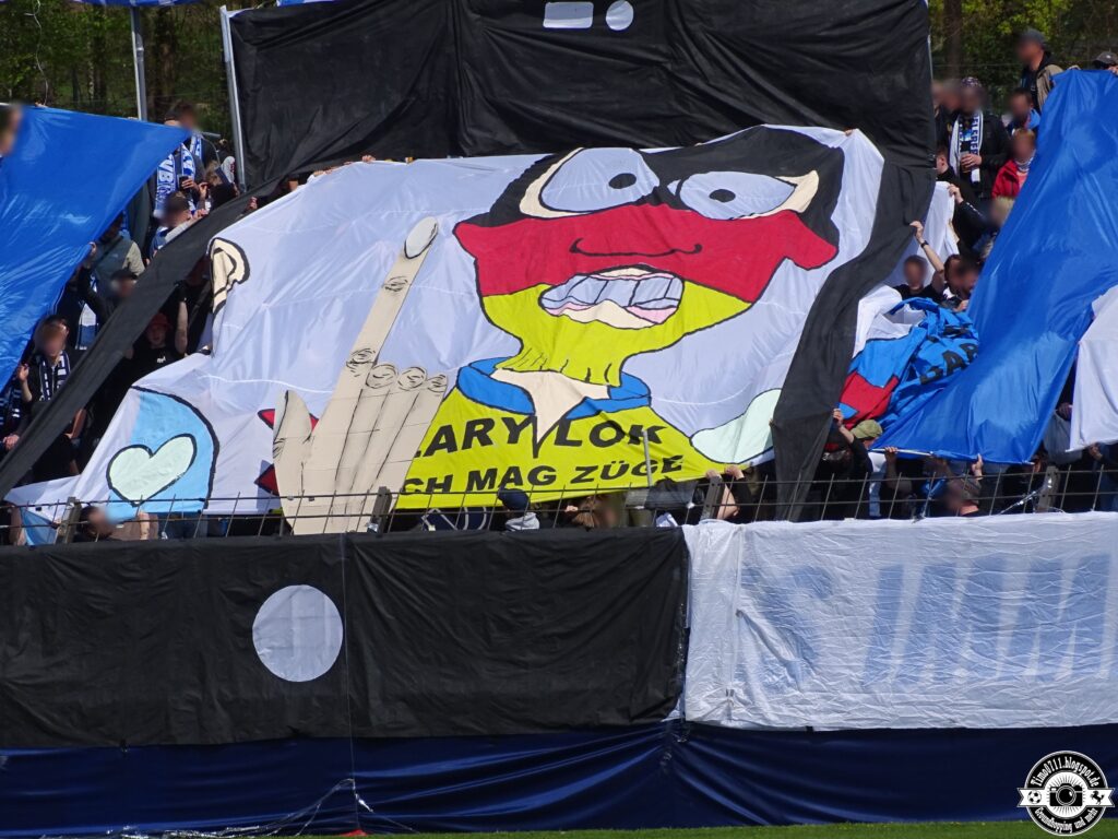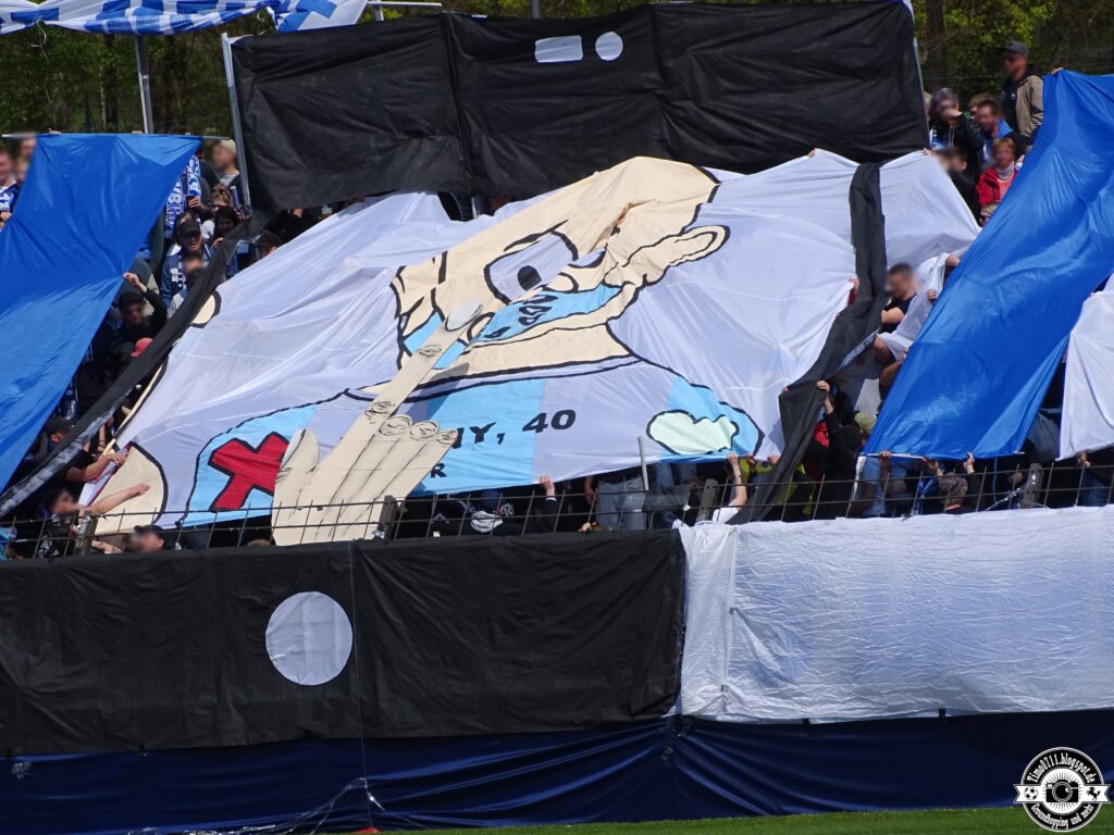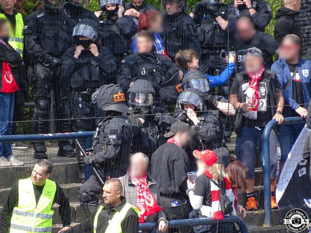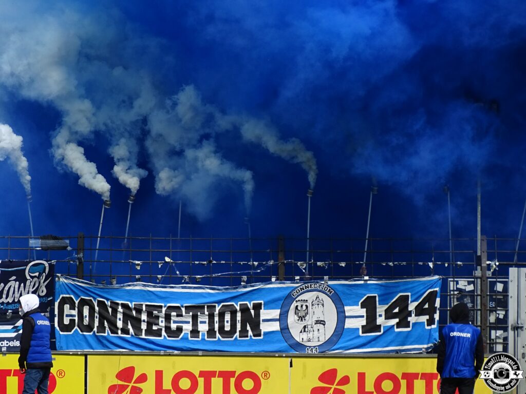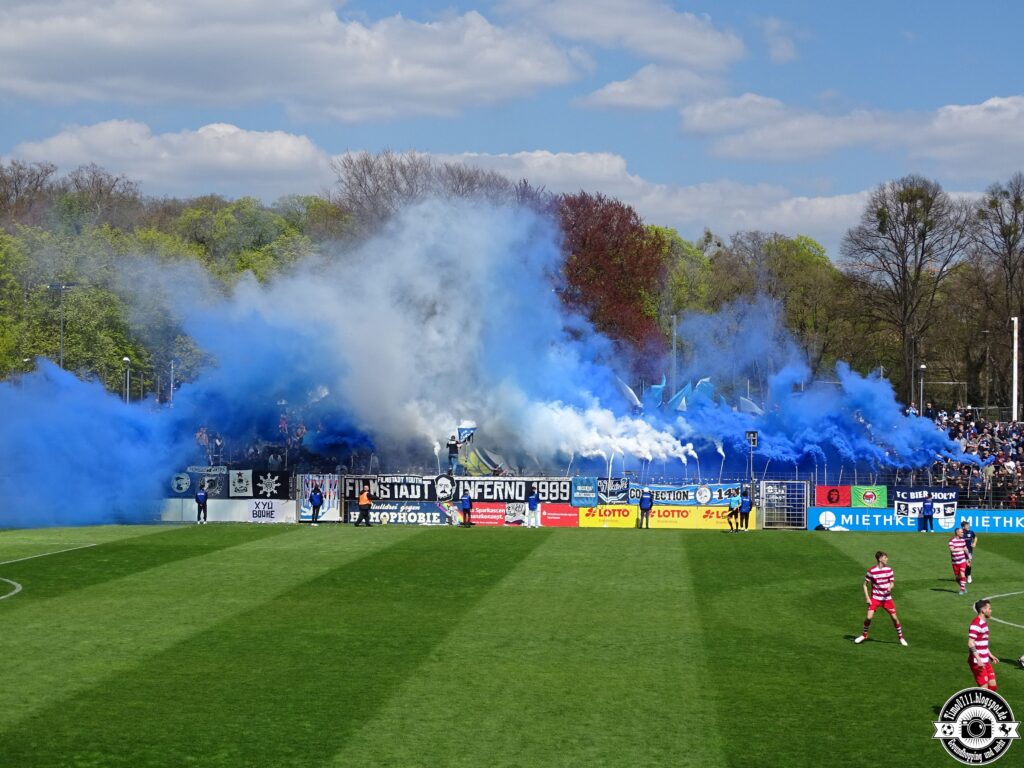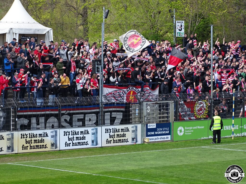 Zwischen Gästeblock und Nordkurve explodierten noch zwei Böller und Polizei und Ordnungsdienst schritten im Gästeblock ein. Auf dem Rasen gewannen die Gäste aus der Lausitz das Derby vor 3.546 Fans das Brandenburg-Derby mit 2:0, was von den etwa 400 Cottbus-Fans im Karl-Liebknecht-Stadion gefeiert wurde. (Faszination Fankurve, 24.04.2022)