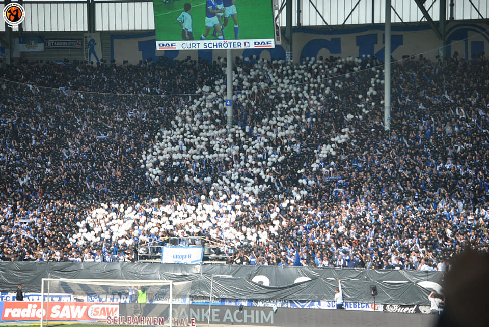 Vor Anpfiff des gestrigen Drittligaspiels wurde eine Gedenkminute für Joachim Streich abgehalten. Die Vereinslegende des 1. FC Magdeburg verstarb am 16. April 2022. Am Mittelkreis wurde während der Gedenkaktion ein Trikot mit der Rückennummer 9 ausgebreitet und die FCM-Fans stellten die gleiche Zahl mit schwarzen und weißen Luftballons dar.