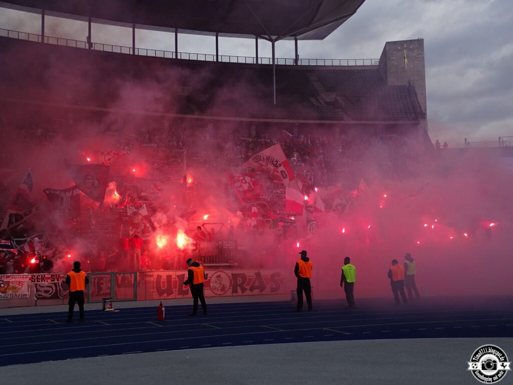 54.589 Fans kamen am Sonntag in Olympiastadion Berlin, um das direkte Aufeinandertreffen zweier Abstiegskandidaten der 1. Bundesliga zu sehen. Im Gästeblock leiteten die mitgereisten Ultras des VfB Stuttgart die Partie mit einer Pyroshow ein.