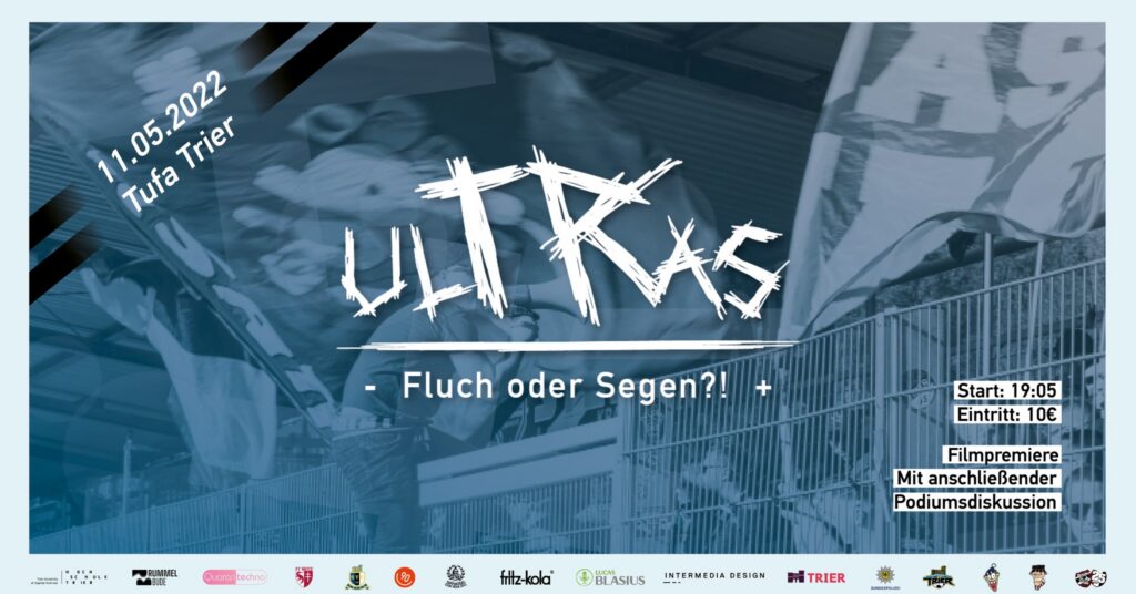 „Die Dokumentation ‚ulTRas – Fluch oder Segen?!‘ ist ein Versuch, die Komplexität der Ultra-Subkultur in Trier darzustellen und deren Vor- und Nachteile werteneutral zu beleuchten. Verschiedene Ultras, Offizielle des Vereins SV Eintracht Trier 05, sowie andere Fans und die Bundespolizei, wurden zur Thematik Ultras bzw. Fankultur befragt und geben Einblicke in ihren täglichen Umgang und Schnittstellen mit den Ultras. Um einen Blick über den Tellerrand hinaus zu erlangen, wurden ebenfalls zwei befreundete Ultras aus Metz in Frankreich interviewt. Der Film soll einen objektiven Einblick in das Leben eines Ultras geben und deren Tätigkeitsfelder, Motivationen und Probleme darstellen. Ferner soll er mögliche Lösungsansätze im Spannungsfeld mit Verein und Polizei aufzeigen. Dieses Werk ist im Rahmen eines Intermedia-Design-Studiums in Trier entstanden und wurde unabhängig von beteiligten Gruppen oder Institutionen produziert“, heißt es in der Ankündigung zum Film. (Faszination Fankurve, 27.04.2022)