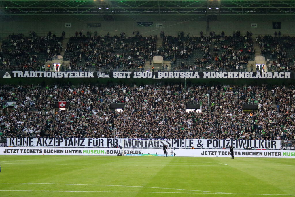 Das Heimspiel gegen RB Leipzig wurde von der DFL auf Wunsch der Polizei auf einen Montag gelegt, damit die Einsatzkräfte am demonstrationsstarken 01. Mai nicht mit Fußballspielen belastet werden. In der Nordkurve Mönchengladbach hing deshalb gestern ein großes „Keine Akzeptanz für RB, Montagsspiele & Polizeiwillkür“-Spruchband. Zudem wurde in Anlehnung an das Gründungsjahr des eigenen Traditionsvereins für die ersten 19:00 Minuten kein Support organisiert und stattdessen mit Trillerpfeifen gegen RB Leipzig protestiert. Ein Aktion, die bereits bei den bisherigen Aufeinandertreffen mit RB Leipzig so praktiziert wurde.