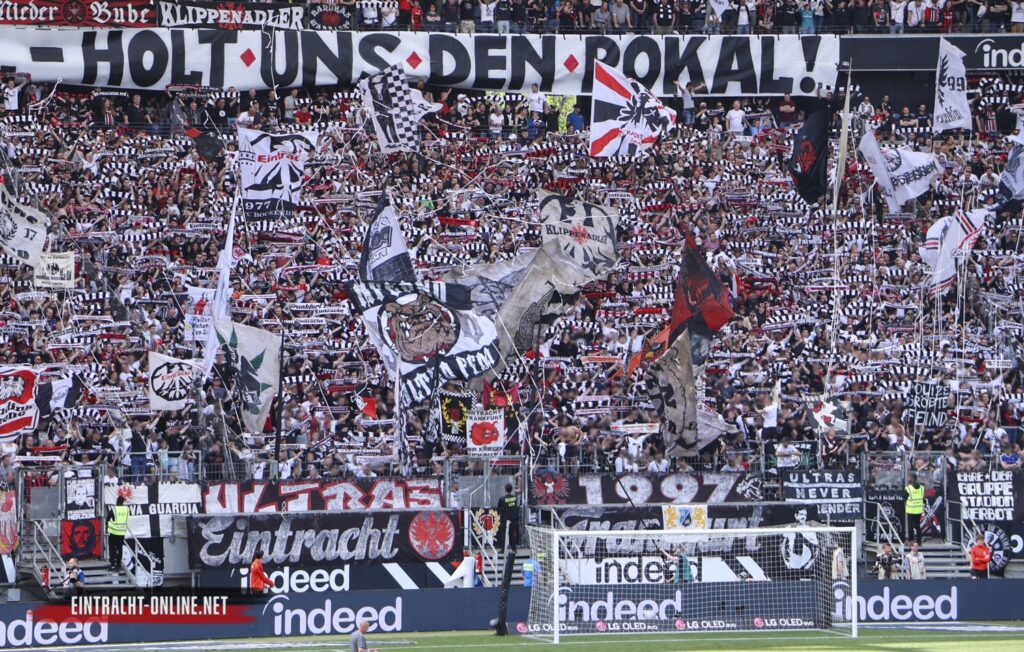 „Europapokalfinale. Es ist unfassbar. Uns fehlt nur noch ein Schritt zum Titel! Und wir sehen, wie sehr unsere Unterstützung die Spieler beflügelt. Leider können aber längst nicht alle Eintrachtfans in Sevilla ins Stadion – deshalb zeigen wir unserer Mannschaft schon vorher, dass die ganze Region hinter ihr steht! Hängt die Eintracht-Fahne an den Balkon, hisst sie in Eurem Garten, beflaggt Eure Kneipen und Geschäfte. Kurz: Schmückt unsere Stadt in schwarz, weiß und rot! Achtet dabei bitte darauf, dass die Sachen hoch genug hängen und gut befestigt sind – an den Rändern unseres schönen Hessenlandes gibt es tatsächlich immer noch einige Offebäscher und andere Hannebambel…ALLE ZUSAMMEN FÜR DEN EUROPACUP!“, so der Aufruf der Nordwestkurve Frankfurt.