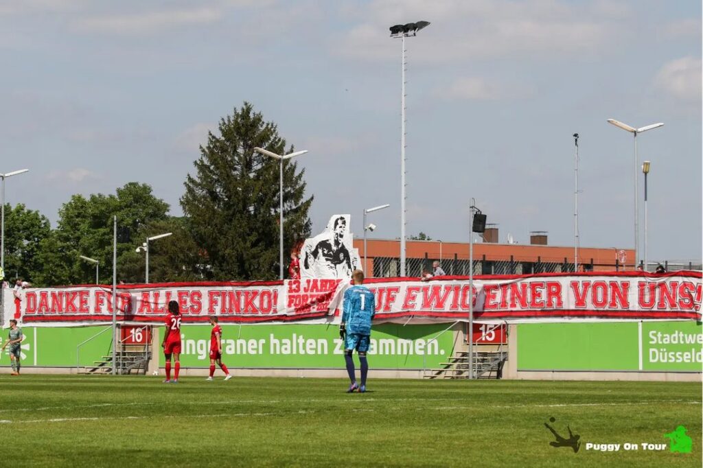 Im Paul-Janes-Stadion versammelten sich die Düsseldorfer Fans und Ultras gestern hinter der „Alles aus Liebe – Fortuna Düsseldorf“-Zaunfahne und verabschiedeten Oliver Fink, der 13 Jahre für Fortuna Düsseldorf aktiv gegen den Ball trat und nun ins Nachwuchsleistungszentrum der Fortuna wechselt. „Seit 2009 mehr abgeräumt als jeder Köbes – Danke Finko“ und „Danke für alles Finko! Auf ewig einer von uns!“ lauteten die Botschaften der Abschiedsaktionen. Dazu zündeten Düsseldorfer Ultras mehrfach roten Rauch, weshalb der Schiedsrichter die Regionalliga West-Partie sogar unterbrach. Die Unterbrechung sorgte jedoch weder bei den Fans noch bei den Spieler auf Verständnis. (Faszination Fankurve, 15.05.2022)