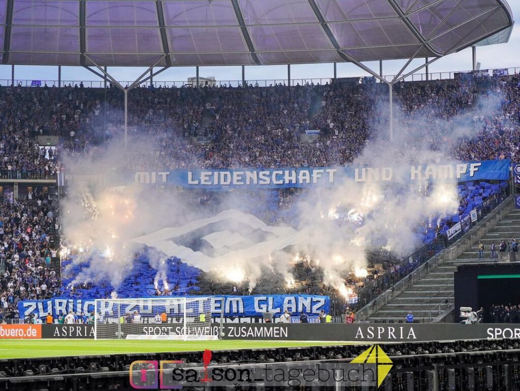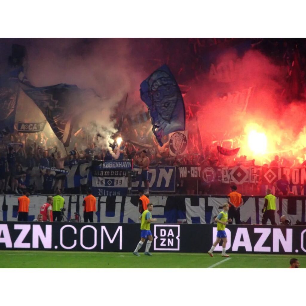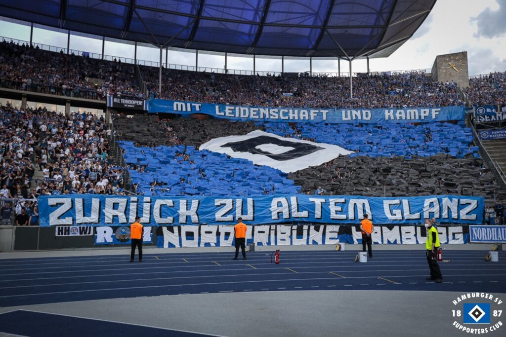 Der Hamburger SV hat das Relegationshinspiel gestern Abend vor 75.500 Fans im Olympiastadion Berlin gegen Hertha BSC mit 1:0 gewonnen. Die mitgereisten HSV-Fans zeigten zu Beginn eine Choreografie, die mit Pyrotechnik untermalt wurde.