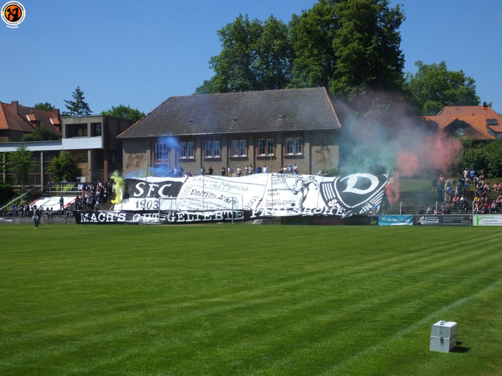 Der jahrelange Kampf der Dynamo Schwerin-Fans für den Erhalt der Paulshöhe blieb somit vergeblich. Gestern wurde nochmal ein würdiger Abschied organisiert. „Mach’s gut geliebte Paulshöhe“ lautete das Motto der Aktion, bei der auf einer Blockfahne die Wappen des Schweriner Fußball-Club und der SG Dynamo Schwerin zu sehen waren. Zudem wurde an große Partien, wie die Aufstiegsspiele für die DDR-Oberliga 1974/75 und 1989/90 oder die FDGB-Pokalspiele gegen den 1. FC Magdeburg und Lokomotive Leipzig erinnert.