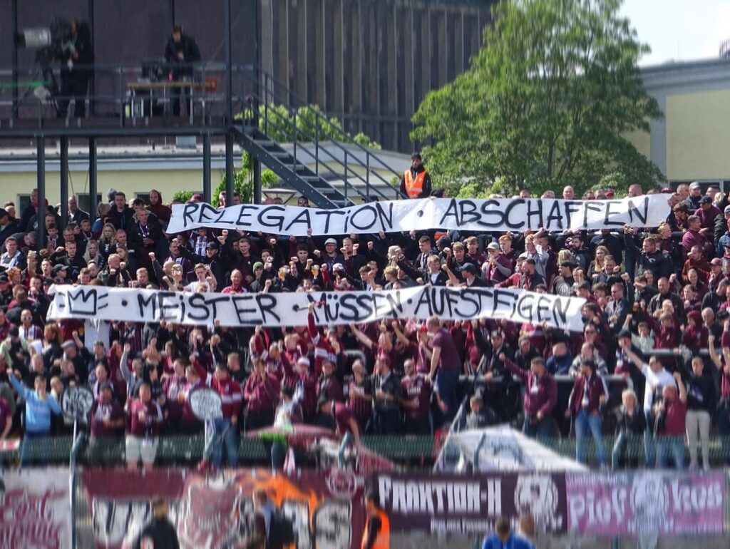 Der Unsere Kurve e.V., in dem Fanabteilungen und Supporters Clubs aus ganz Deutschland organisiert sind, fordert die Abschaffung der Aufstiegsspiele für die 3. Liga. Weil nicht alle Meister der fünf Regionalligen in die 3. Liga aufsteigen, bleibt jede Saison ein Regionalliga-Meister auf der Strecke.