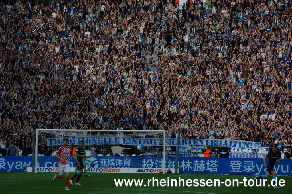 Die Harlekins Berlin führten beim Heimspiel von Hertha BSC gegen den 1. FSV Mainz 05 wieder ihre „Spendet Becher – Rettet Leben“-Spenden und Erinnerungsaktion durch. Die Einnahmen gingen in diesem Jahr an den Wünschewagen Berlin. Insgesamt kamen bei der Aktion 50.000 Euro zusammen.