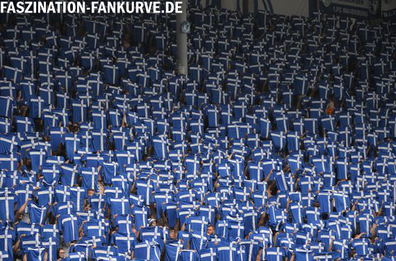 Die Fanszene des 1. FC Magdeburg macht bereits für die beiden Heimspiele mobil und ruft alle FCM-Fans auf, in Blau im Stadion zu erscheinen: „Endlich geht es wieder los! Endlich sind wir wieder da! Endlich können wir wieder beweisen, dass wir die Größten auf der Welt sind! Mit großer Spannung haben wir alle die Auslosung im DFB-Pokal verfolgt und uns den neuen Spielplan mit großen Augen immer wieder von oben nach unten durchgelesen. Der Saisonauftakt hat es wirklich in sich und sowohl die Spieler auf dem Rasen als auch wir Clubfans auf den Rängen sind sofort von 0 auf 100 gefordert. Es gibt keine lockere Aufwärmphase, es gibt kein gemütliches Reinkommen – wir alle müssen von der ersten Sekunde an hellwach sein und mit voller Kraft in die neue Saison starten! Block U ist absolut heiß auf die vor uns liegende Spielzeit und wir können es kaum noch erwarten endlich wieder das gesamte Heinz-Krügel-Stadion mit unseren Gesängen mitzureißen! Die akustische Einheit auf den Rängen ist das, was uns als Fanszene des großen 1. FC Magdeburg ausmacht. Doch diese akustische Einheit ist bei einem solchen Saisonstart nicht genug – die Heimspiele gegen Düsseldorf und Frankfurt wollen wir nutzen, um auch optisch im Heinz-Krügel-Stadion als große feste Einheit hinter unserer Mannschaft zu stehen. Wir rufen alle Clubfans auf, zu den Heimspielen gegen Düsseldorf und Frankfurt im blauen Oberteil ins Stadion zu kommen. Und alle meint auch ALLE. Angefangen beim Vereinspräsidenten bis hin zum kleinsten Fan mit Schoßkarte soll ausnahmslos jeder Clubfan in einem blauen Oberteil erscheinen. Verbreitet unseren Aufruf und helft mit, dass wir sowohl auf dem Platz als auch auf den Rängen geeint und erfolgreich in die neue Saison starten! ALLE KOMMEN IN BLAU, ALLE GEBEN 100% UND JEDES LIED WIRD MITGESUNGEN!“, so der Aufruf von Block U.