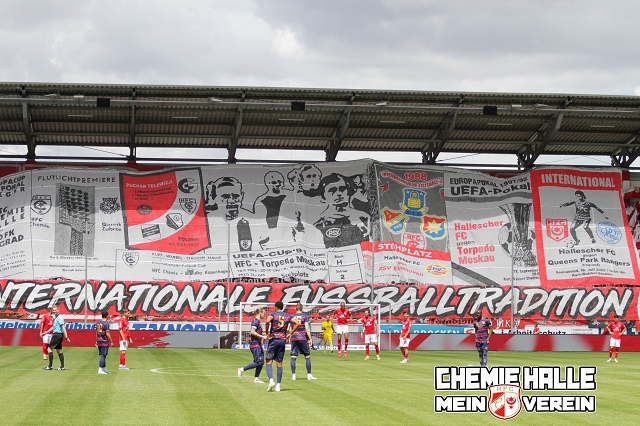Eine Woche vor Start der 3. Liga bestritt der Hallesche FC am gestrigen Samstag ein Testspiel gegen die Queens Park Rangers aus England. 6.119 Fans, darunter auch einige Gästefans aus London, kamen ins Kurt-Wabbel-Stadion. Die HFC-Fanszene nahm das Spiel zum Anlass, um an die internationalen Spiele von Chemie Halle zu erinnern.