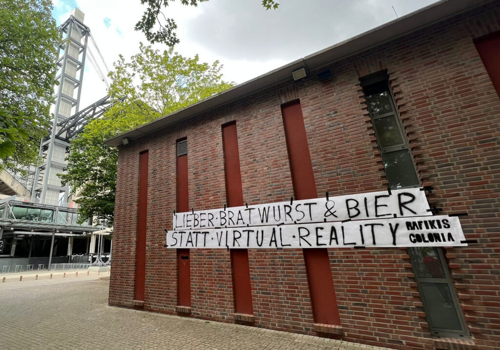 Im Vorfeld des gestrigen Testspiels machten aktive Fans darauf mit Spruchbändern im Umfeld des Müngersdorfer Stadion aufmerksam. „Lieber Bratwurst & Bier statt Virtual Reality“, stand auf einem Spruchband im Nordwesten außerhalb des Müngersdorfer Stadions geschrieben. Auf der Anreise zum Stadion war „Je digitaler desto irrealer“ zu lesen. Zur Echtzeit-Analyse von Warteschlangen für Fans im Stadion schrieben die Rafkis Colonia „Willkommen beim digitalen FC – der Verein der ihnen sagt, wo sie ihre Wurst am schnellsten bekommen und wegbringen“ auf ein an der Südkurve angebrachtes Plakat.