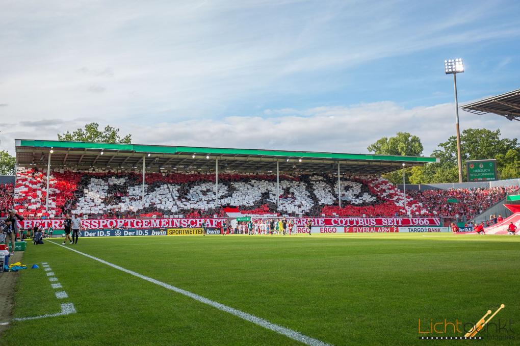 Zu sehen ist darin u.a. auch die Choreografie, die die FC Energie-Fans diese Woche beim Pokalspiel gegen Werder Bremen zeigten: