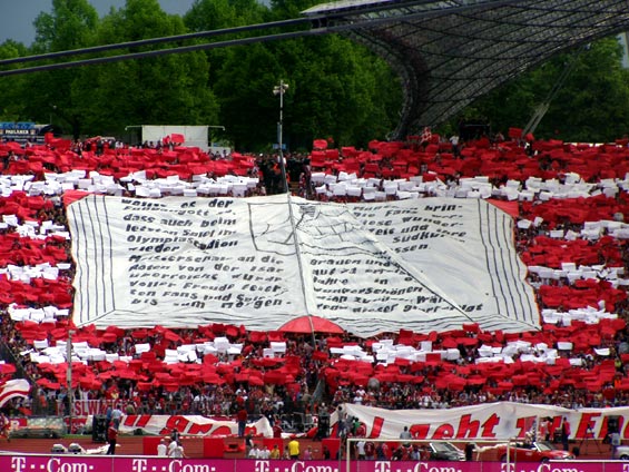„Seit 1972 stehen Bayernfans in der Südkurve. 50 Jahre Geschichte, mit Auf und Ab, Siegen und Niederlagen, Jubel und Trauer. Erst viele Jahre im Olympiastadion unter der Anzeigetafel, mittlerweile in einer neuen Südkurve im Stadion im Münchner Norden. Genau dorthin laden wir Euch ein. Gemeinsam blicken wir auf fünf Jahrzehnte Südkurve zurück und hoffen auf ein gebührendes Fest mit allen Generationen der Kurve. Wie schon 2019 wird auch diesmal die Feier von der Kurve mit Unterstützung des FC Bayern veranstaltet. Die Kioske sind geöffnet, es gibt ein abgestimmtes Programm an Essen und Getränken von dem normalen Betreiber zu extra ausgehandelten Preisen. Die Einnahmen aus dem Eintrittskartenverkauf dienen der Deckung der Kosten, etwaige Überschüsse daraus werden für soziale Zwecke gespendet. Wir bedanken uns beim FC Bayern und der Betreibergesellschaft für diese Möglichkeit. Direkt nach dem Spiel gibt es bis zum Einlass wieder am Südkurvenplatz am Fuß der Esplanade Getränke, um die Zeit zu überbrücken. Eintrittskarten können im Vorverkauf ab dem Heimspiel gegen Wolfsburg am Südkurvenplatz, am Südkurvenstand und im Block bei den Vorsängerpodesten gekauft werden, auch bei den Auswärtsspielen wird es Möglichkeiten geben Karten zu erwerben“, so die Ankündigung der Südkurve München zu 50 Jahre-Party.